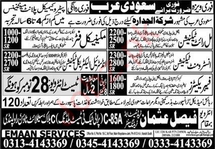 Vacant posts including industrial electrical technician, mechanical fitter, instrument technician, fabricator and millwright technician are announced in Faisal Usman Trade Test & Training Center Makkah, madina Saudi Arabia as per 26 November 2023 advertisement in daily Express Newspaper. Persons with DAE, Intermediate and Matric etc. education can apply.