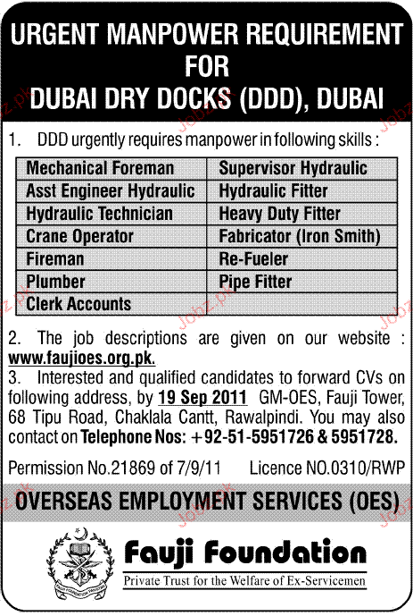 Apply as per details in job advertisement. Login to view further details of how to apply via https://www.jobz.pk online.