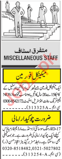 Mechanical Foreman & Engineer Jobs 2020 in Islamabad