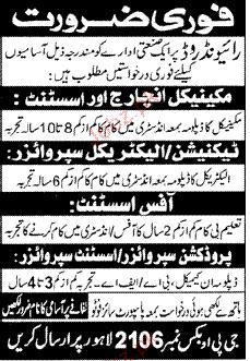 Mechanical Incharge, Technician, Office Assistant Required