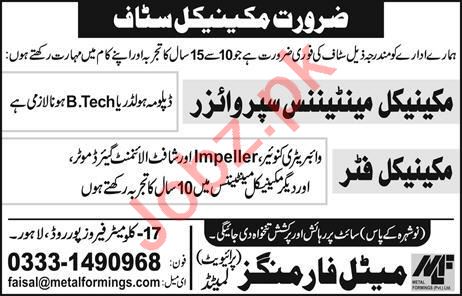 Vacancies in Metal Formings Pvt Limited Advertisement May 2020
