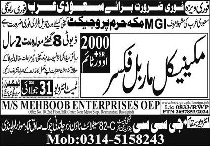 Mechanical Marble Fixer Jobs Career Opportunity Saudi Arabia
