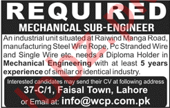 Mechanical Sub Engineer Jobs 2018 In Lahore