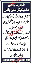 Mechanical Supervisor Job Opportunity
