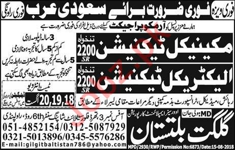 Mechanical Technician & Electrical Technician Jobs 2018