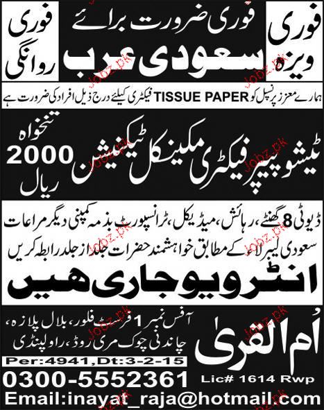 Apply as per details in job advertisement. Login to view further details of how to apply via https://www.jobz.pk online.