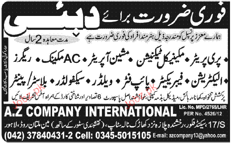 Apply as per details in job advertisement. Login to view further details of how to apply via https://www.jobz.pk online.