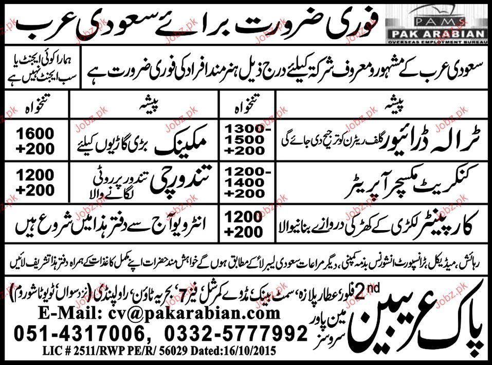 Mechanics, Carpenters, Tralla Drivers Job Opportunity