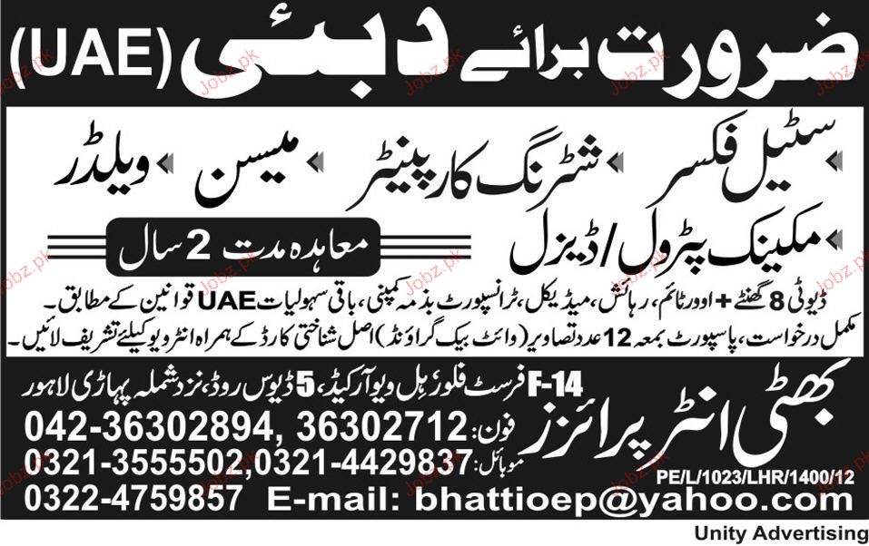 Mechanics Petrol / Diesel, Welder, Mason Job Opportunity