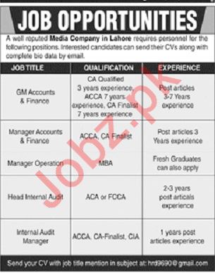 Apply as per details in job advertisement. Login to view further details of how to apply via https://www.jobz.pk online.