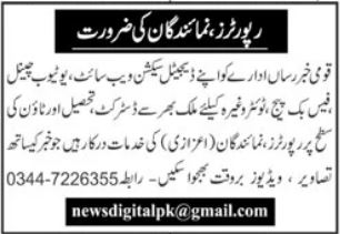 Media Sector invites applications for job positions advertised in daily Jang dated 6 March 2022 for following vacancies in Quetta, quetta Balochistan Pakistan.