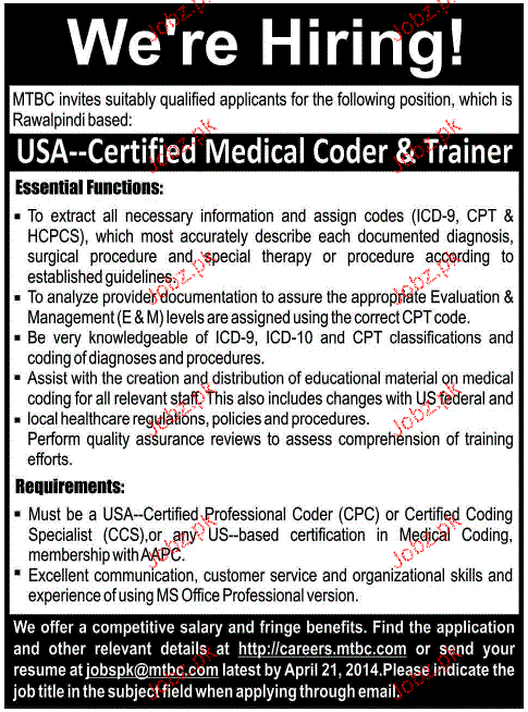 Apply as per details in job advertisement. Login to view further details of how to apply via https://www.jobz.pk online.