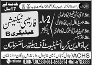 Bahauddin Zakariya Institute fo Health Sciences Multan Pharmacy Technician, Operation Theatre Technology, Medical Lab Technology, Radiology and Imaging Technology, Dispenser admissions 2023 has been started. Bahauddin Zakariya Institute fo Health Sciences Multan Multan Punjab Pakistan welcomes students to apply for admissions in academic year 2023 in Medical College. Eligible students for fulfilling criteria for admissions in Diploma can enroll as per Private admission policy 2023 till closing date 22 November 2023. Read newspaper ad for exact details.