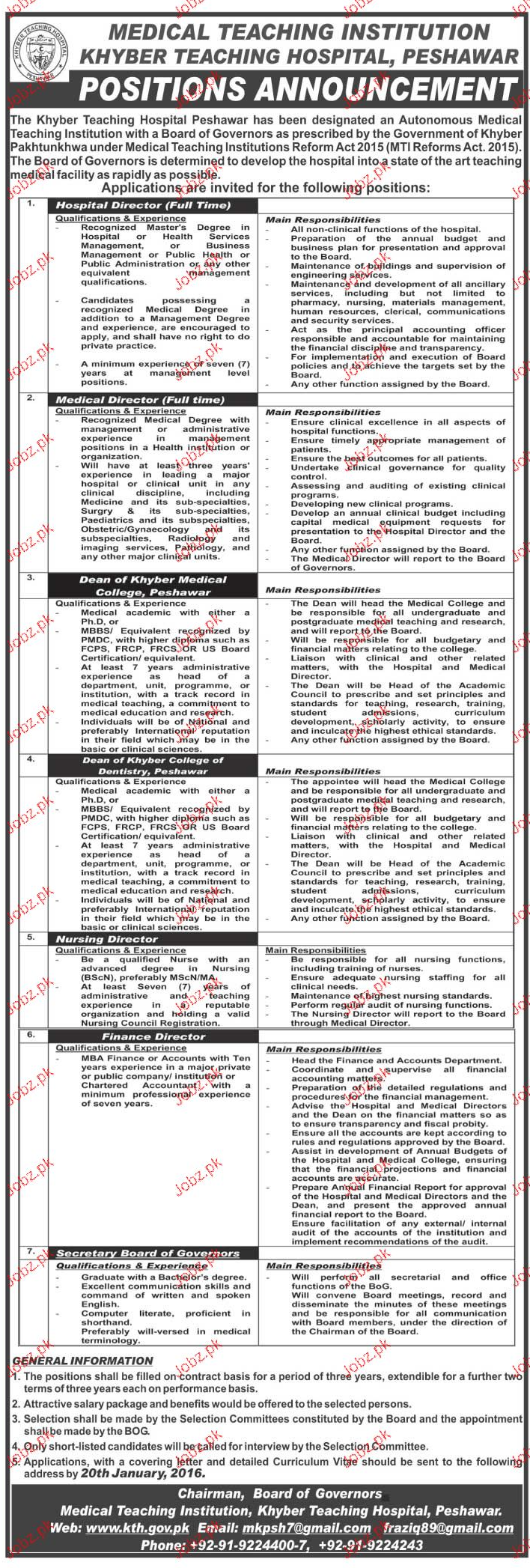 Latest Government Medical Posts Peshawar 2025