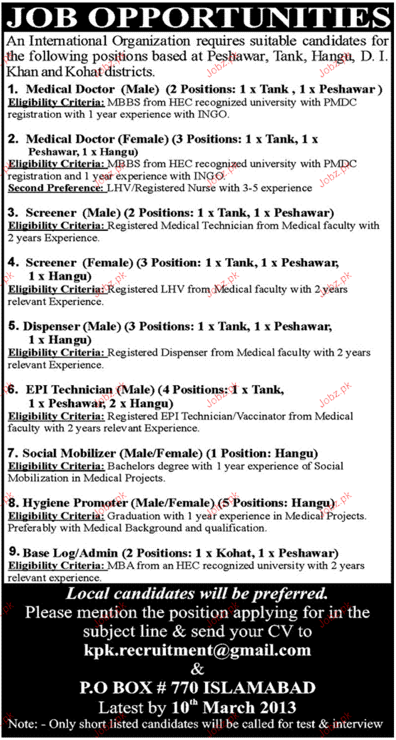 Medical Doctor, Screeners, Social Mobilizers Wanted