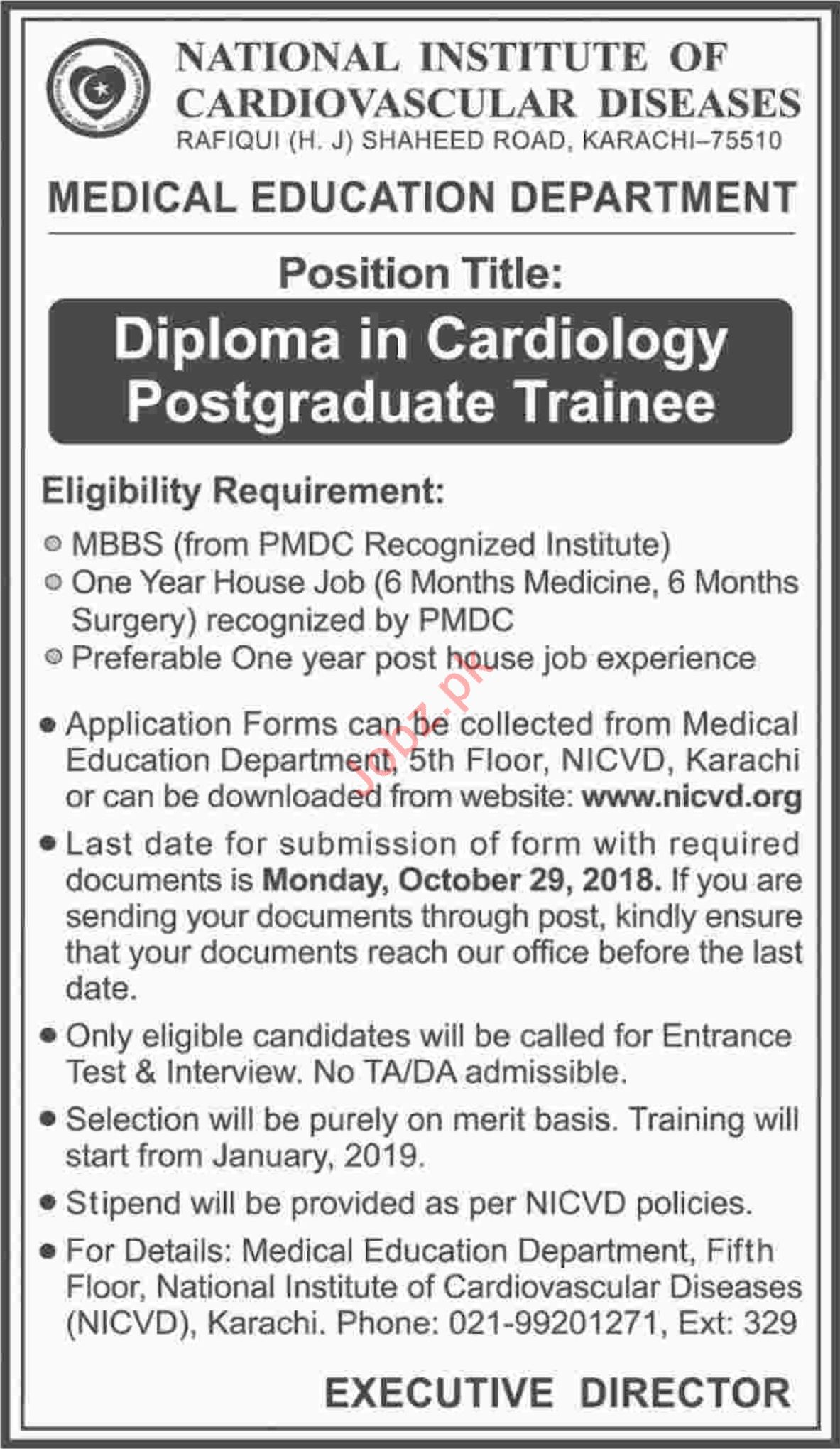 Latest National Institute of Cardiovascular Diseases NICVD Medical Posts Karachi 2025