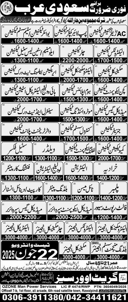 Great Overseas Trade Test & Technical Training Center invites applications for job positions advertised in daily Express dated 19 June 2025 for following vacancies in Riyadh, dammam Saudi Arabia.