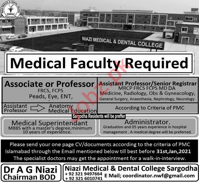 Vacancies in Niazi Medical and Dental College Advertisement January 2021