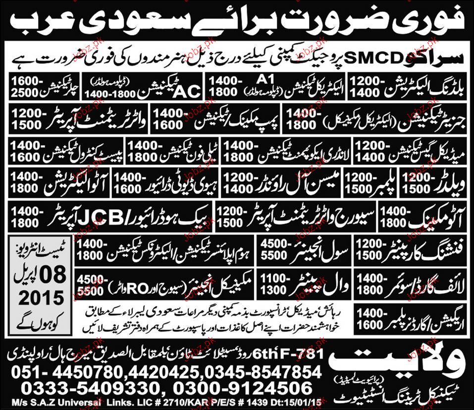 Apply as per details in job advertisement. Login to view further details of how to apply via https://www.jobz.pk online.