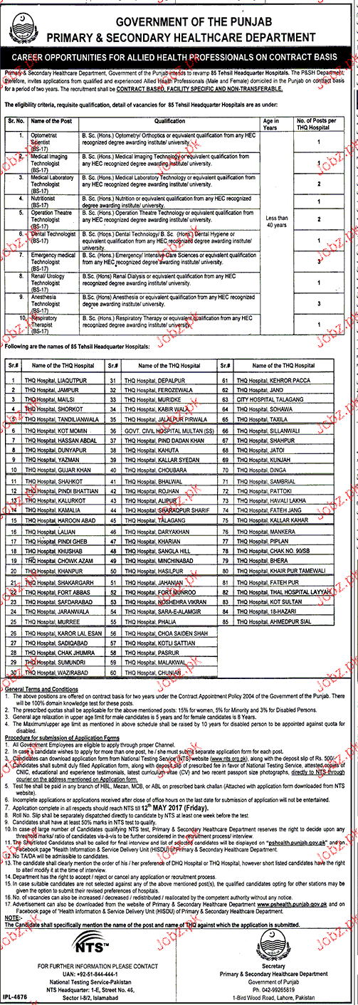 Apply as per details in job advertisement. Login to view further details of how to apply via https://www.jobz.pk online.
