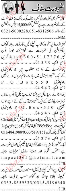 Medical Officer and Marketing Officer Jang Classified ads