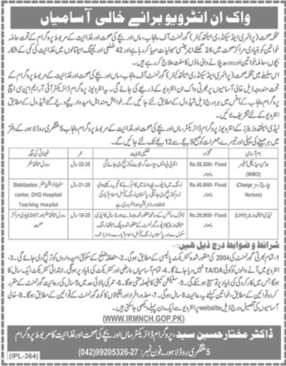 Medical Officer, Charge Nurse & LHV Jobs 2018