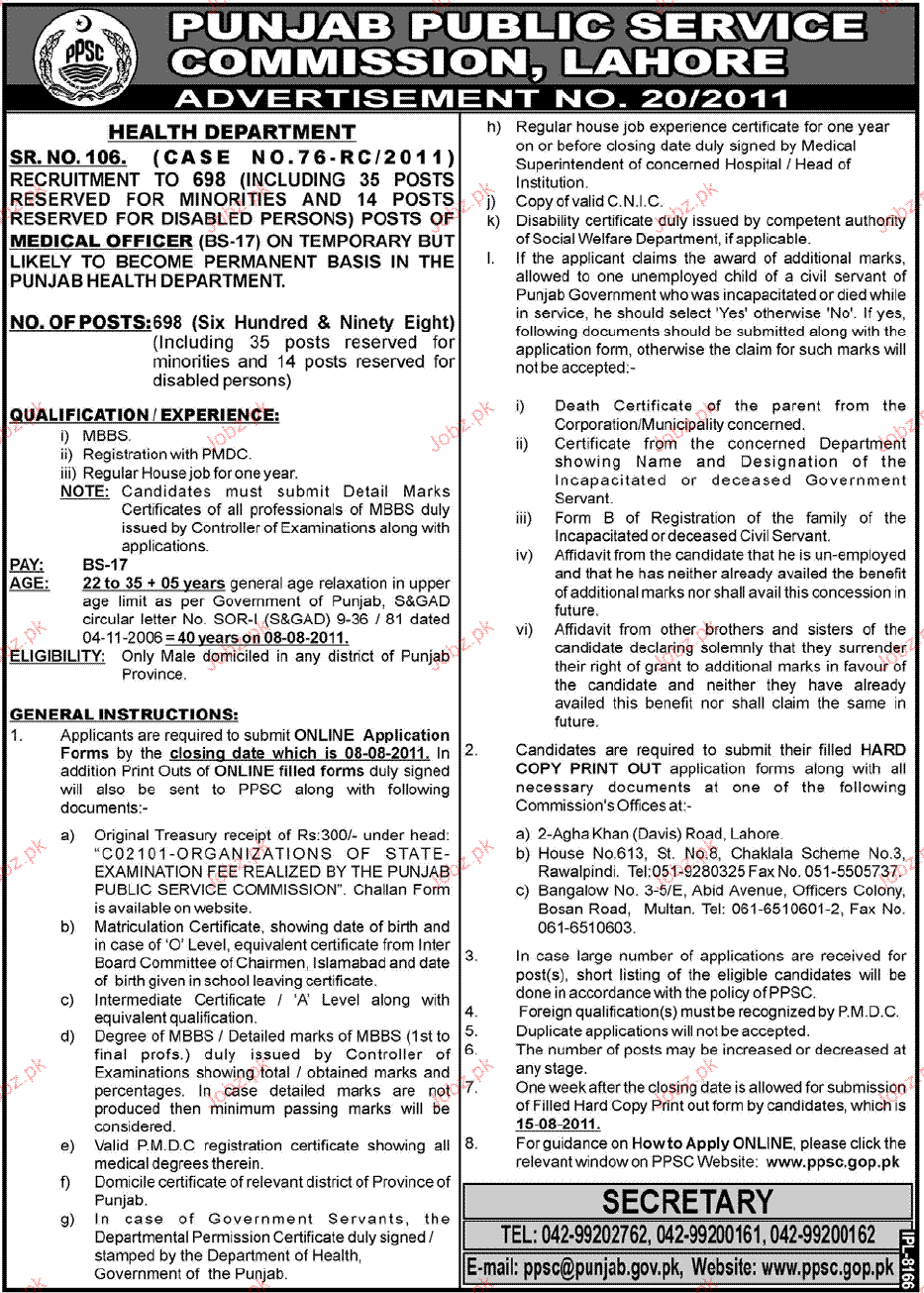 Apply as per details in job advertisement. Login to view further details of how to apply via https://www.jobz.pk online.