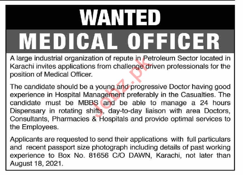Apply as per details in job advertisement. Login to view further details of how to apply via https://www.jobz.pk online.