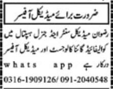 Private Hospital is looking for candidates for following posts as per job advertisement published in daily Mashriq Newspaper of October 11, 2024 for location Peshawar, peshawar Khyber Pakhtunkhwa KPK Pakistan: