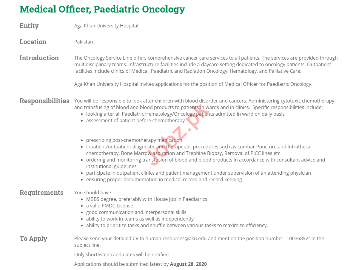 Vacancies in The Aga Khan University Hospital AKUH Advertisement August 2020