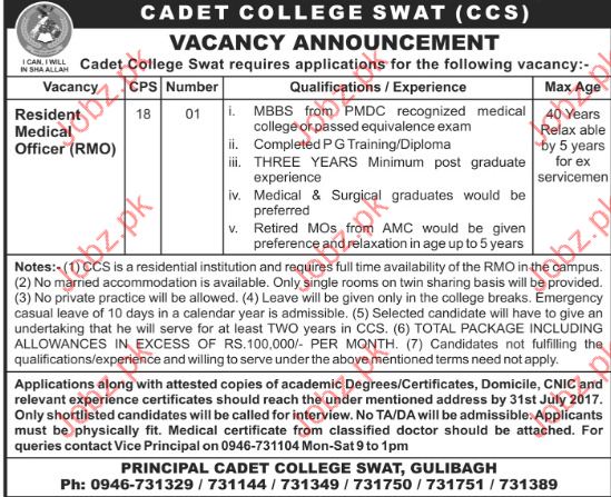 Apply as per details in job advertisement. Login to view further details of how to apply via https://www.jobz.pk online.