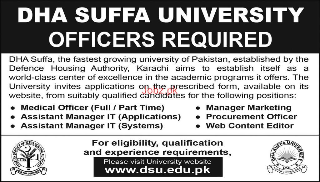 Medical Officer, Marketing Officer Job in DHA Suffa Univ
