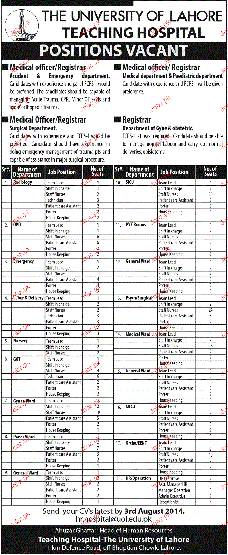 Apply as per details in job advertisement. Login to view further details of how to apply via https://www.jobz.pk online.
