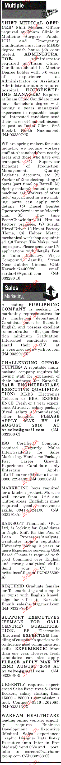 Apply as per details in job advertisement. Login to view further details of how to apply via https://www.jobz.pk online.