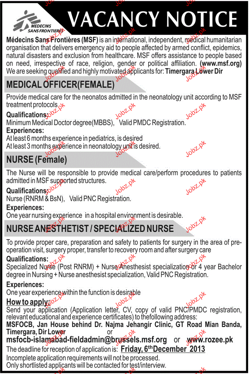 Apply as per details in job advertisement. Login to view further details of how to apply via https://www.jobz.pk online.