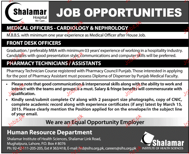 Apply as per details in job advertisement. Login to view further details of how to apply via https://www.jobz.pk online.