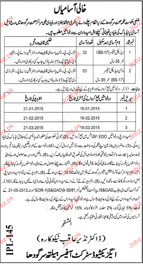Apply as per details in job advertisement. Login to view further details of how to apply via https://www.jobz.pk online.