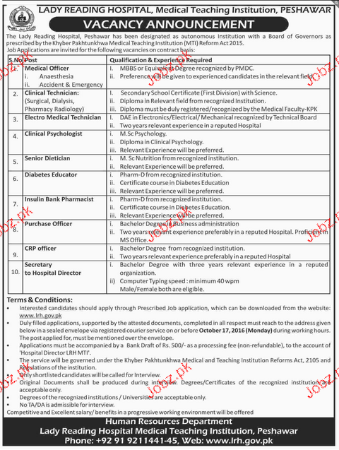 Latest Government Medical Posts Peshawar 2025