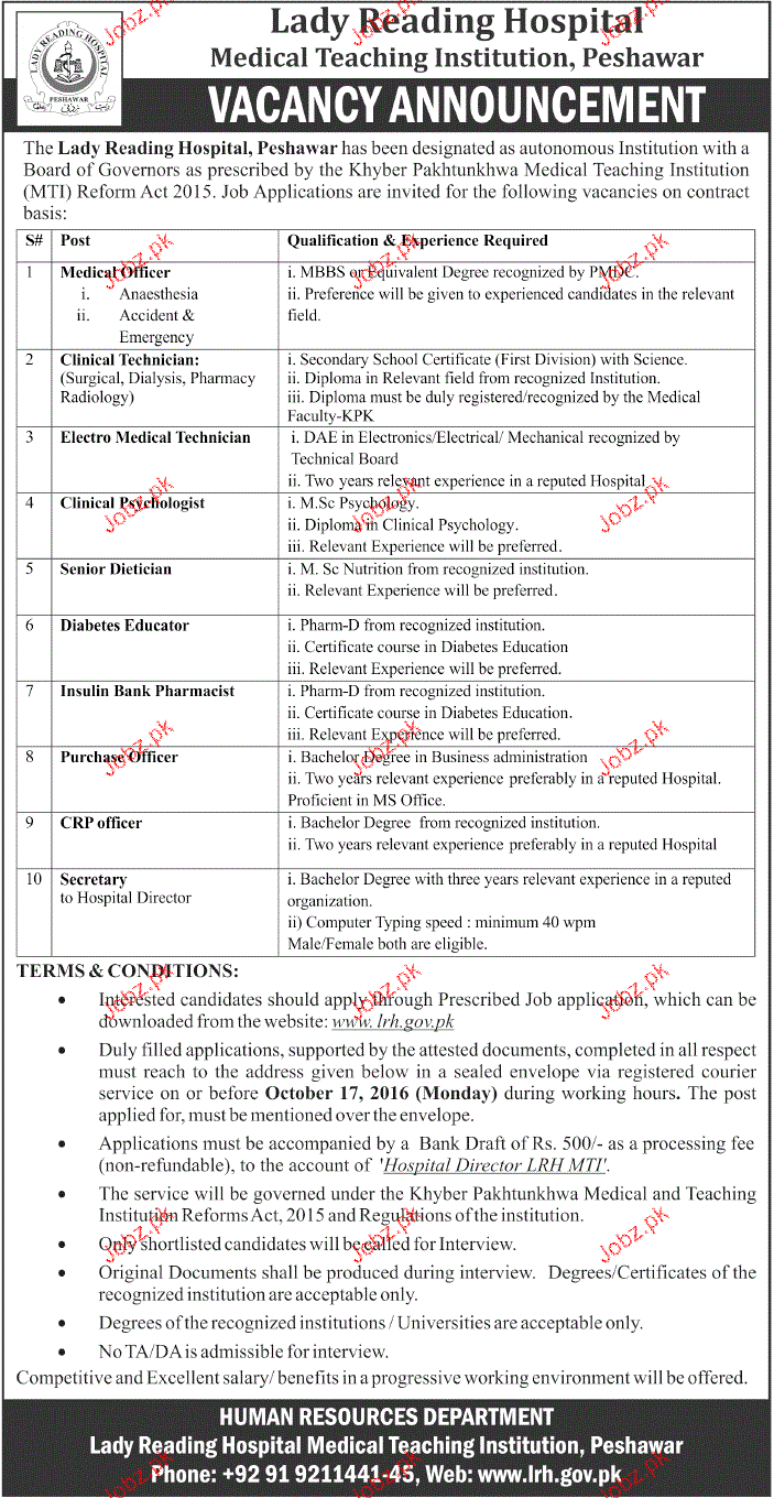 Latest Government Medical Posts Peshawar 2025
