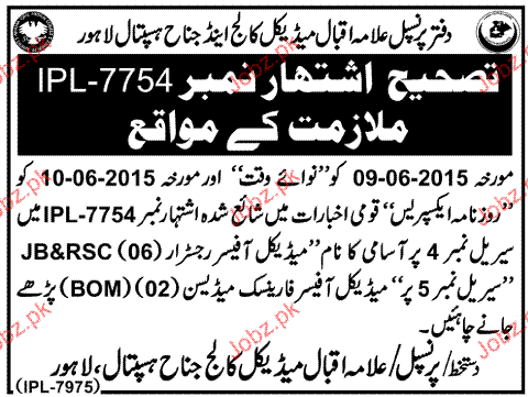 Medical Officers Job In Allama Iqbal Medical College