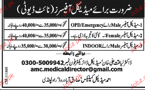 Medical Officers are required in Ahmed Medical Complex in Rawalpindi