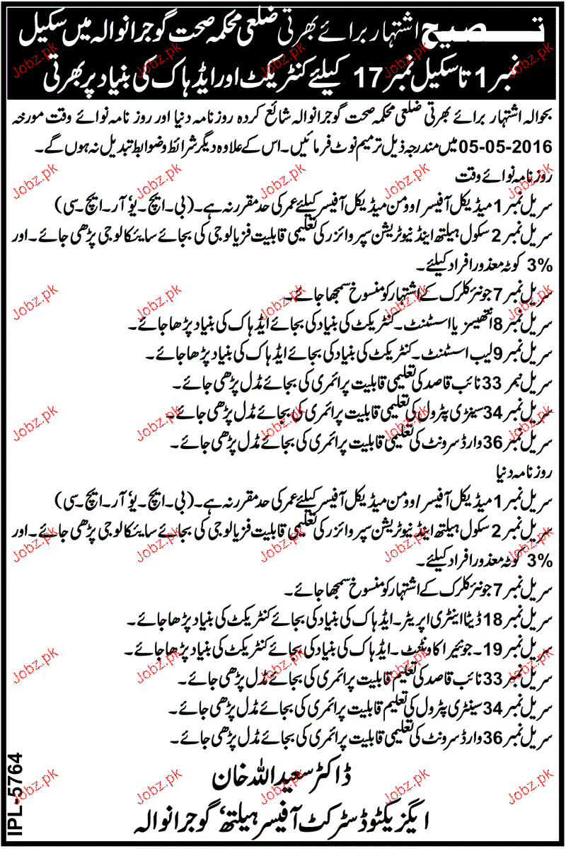 Medical Officers, Junior Clerks, Assistant Job Opportunity