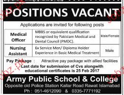 Latest Army Public School APS Medical Posts Islamabad 2025