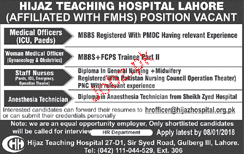 Latest Hijaz Teaching Hospital Medical Posts Lahore 2025