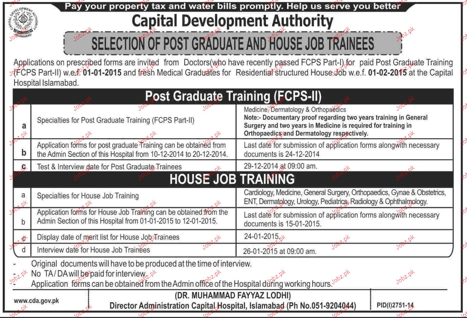 Latest Capital Development Authority CDA Medical Posts Islamabad 2025