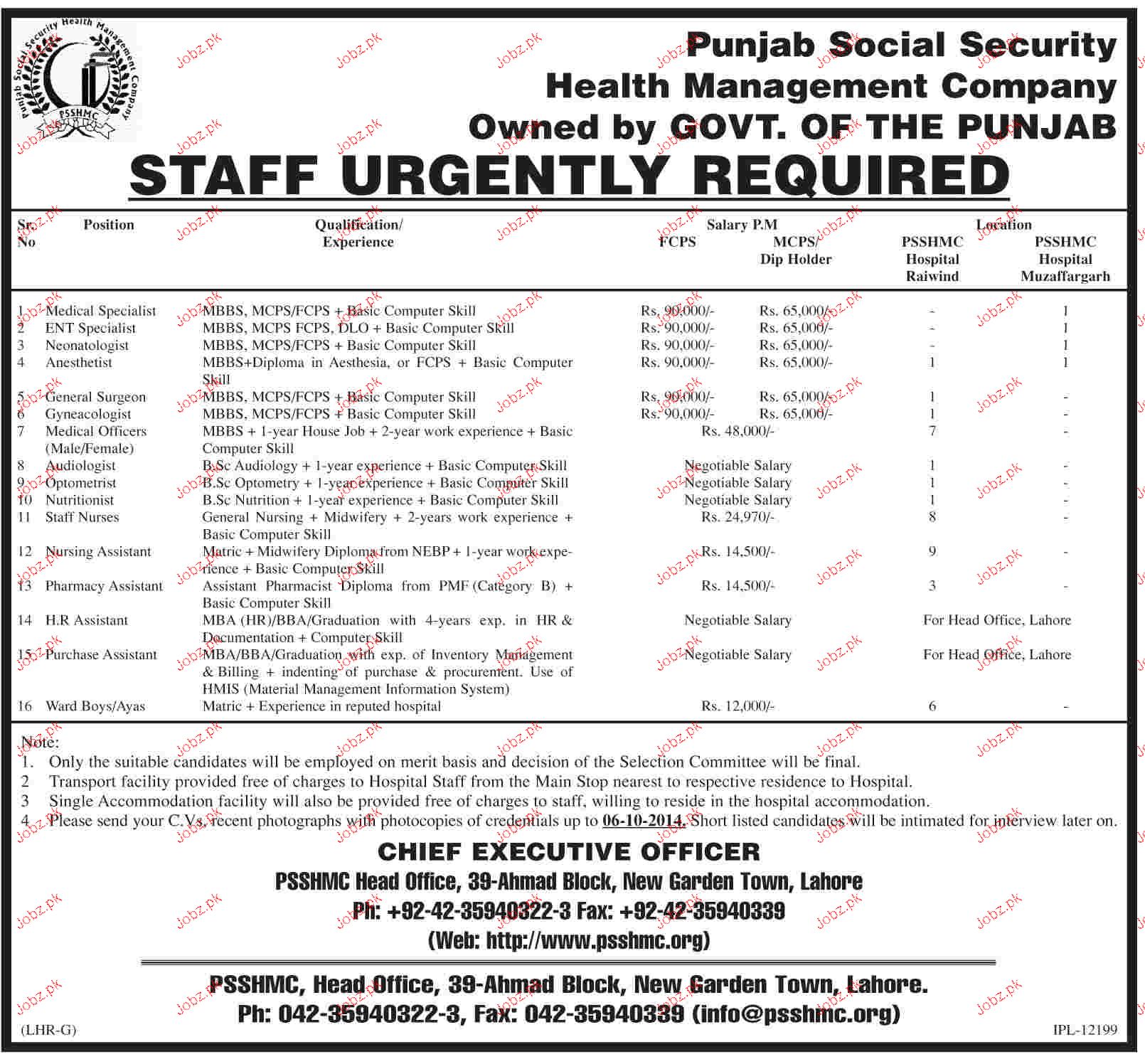 Medical Specialist, ENT Specialists Job In Punjab Social Sec