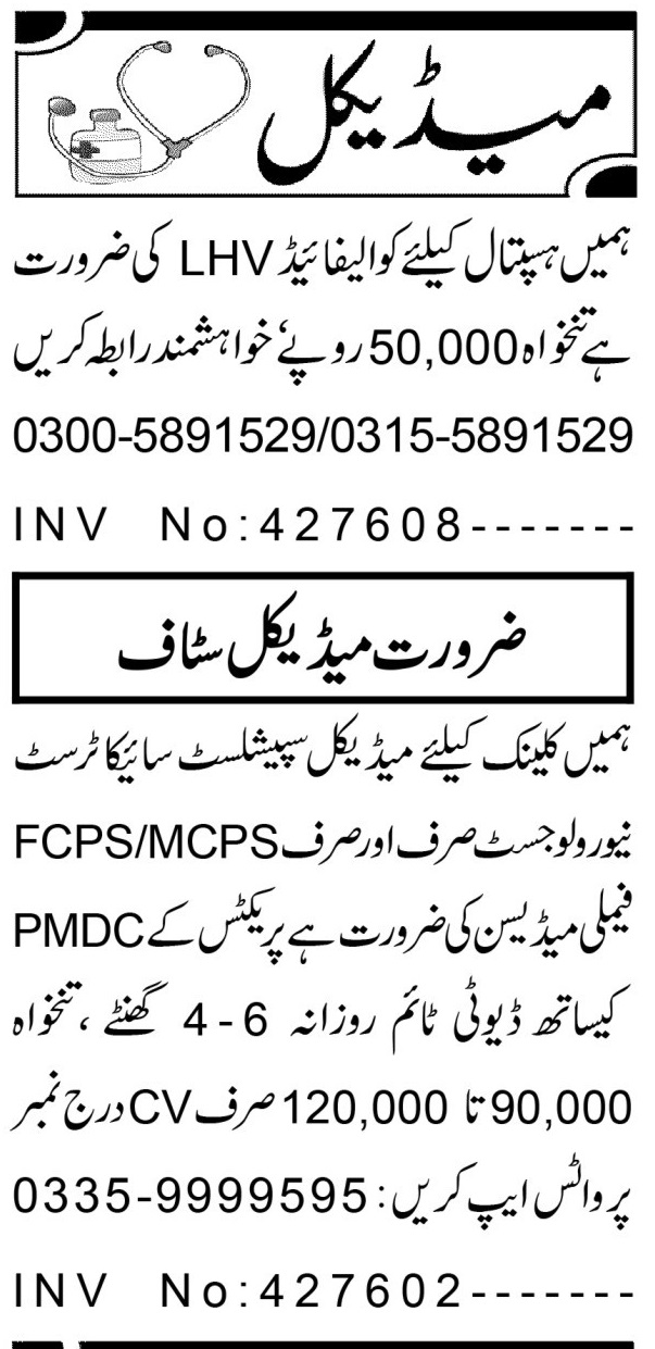 Hospital Clinic jobs advertisement dated about 21 December 2023 in daily Aaj Newspaper invites application for the vacant post of mcps doctor, fcps doctor, neurologist, lady health visitor, lhv, doctor, psychologist and medical specialist in Peshawar, peshawar Khyber Pakhtunkhwa KPK Pakistan. Educational qualifications required FCPS, MCPS, Intermediate, Matric, Bachelor and MBBS etc.