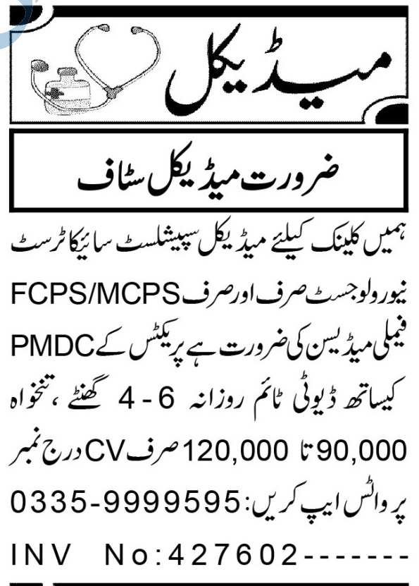 Vacant posts including doctor, mcps doctor, lady doctor, medical specialist, fcps doctor, neurologist and psychologist are announced in Hospital Clinic Peshawar, peshawar Khyber Pakhtunkhwa KPK Pakistan as per 23 December 2023 advertisement in daily Aaj Newspaper. Persons with MBBS etc. education can apply.