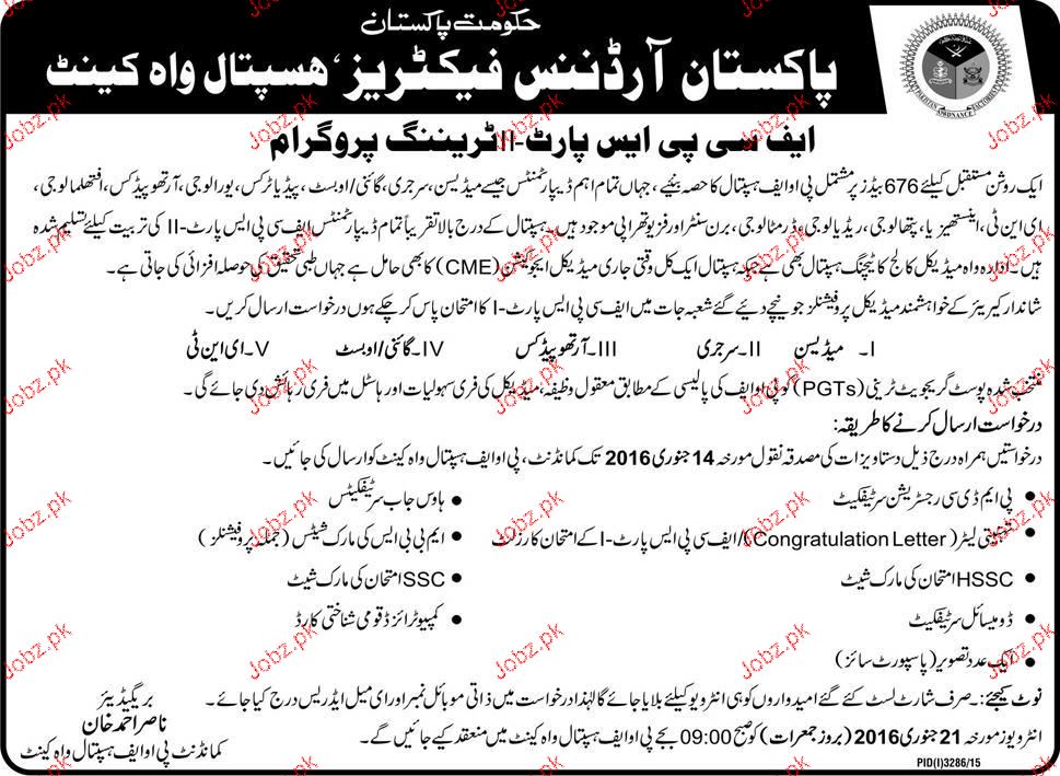 Medical Staff Job in Pakistan Ordinance Factories Hospital