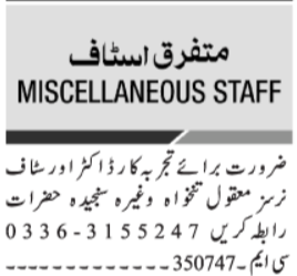 Private Hospital invites applications for job positions advertised in daily Jang dated 14 March 2022 for following vacancies in Islamabad, rawalpindi and islamabad Islamabad Pakistan.